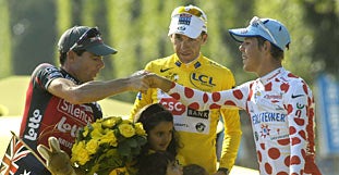 Top-Platzierten der Gesamtwertung und Etappensieger, die Rede, deren Blut im