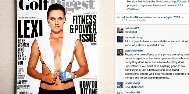 Das Fachmagazin "Golf Digest" hat nichts desto trotz eine "Proette" aufs Cover der aktuellen Ausgabe gehoben: die Amerikanerin Lexi Thompson zeigt sich darin äußerst freizügig und gibt Tips, wie man so fit wird wie sie.