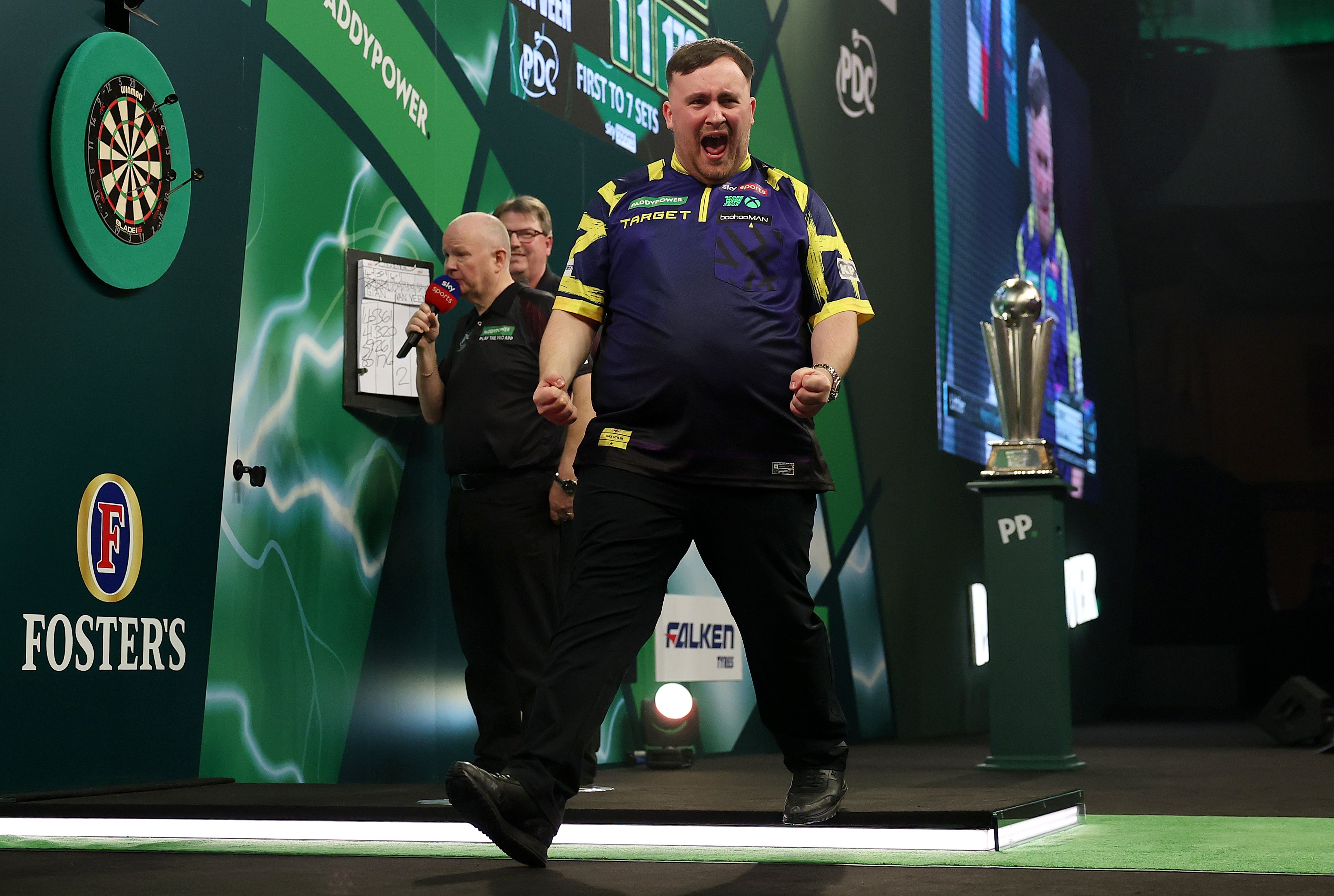 Der 18-jährige Engländer entschied am Samstag im Alexandra Palace von London das WM-Finale gegen den Niederländer Gian van Veen mit 7:1 für sich und sicherte sich erneut die riesige Sid-Waddell-Trophy. Der frischgebackene Doppelweltmeister streicht zudem ein Rekordpreisgeld von einer Million Pfund (1,15 Mio. Euro) ein, während Europameister Van Veen sich mit 400.000 Pfund trösten darf.