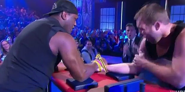Charity-Armdrücken im TV endete mit grausigem Moment.