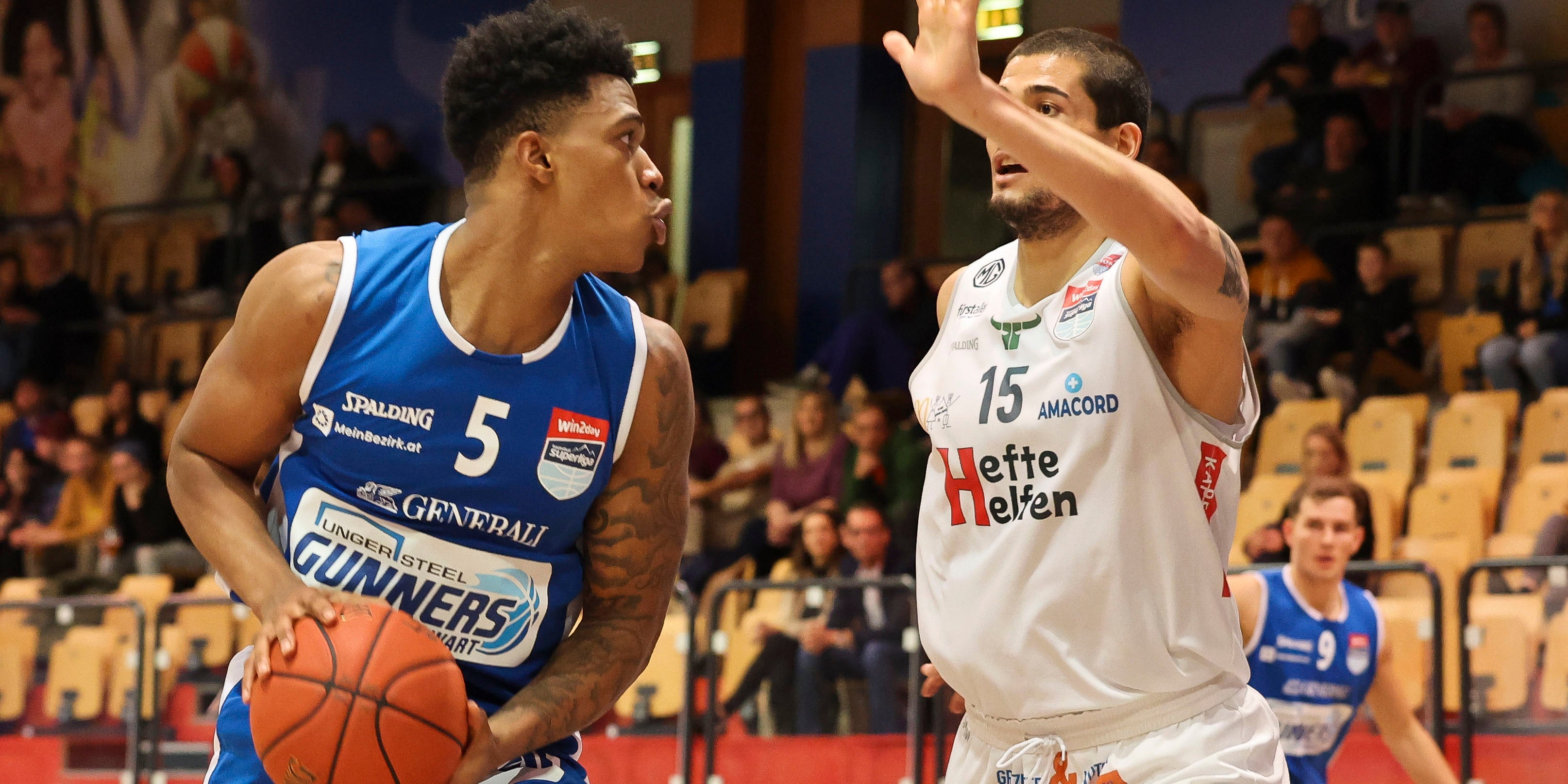 Die Oberwart Gunners liegen in der Männer-Basketball-Superliga (BSL) auch nach der achten Runde des Grunddurchganges nach Punkten gleichauf mit Tabellenführer BC Vienna.