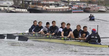 Der Oxford-Achter hat die 155. Auflage des traditionellen Ruderrennens der englischen Elite-Universitäten gegen Cambridge gewonnen. Die favorisierten "Dark Blues" ("Dunkelblauen") kamen am Sonntag nach einem zunächst spannenden Rennen auf der Themse mit über drei Längen Vorsprung ins Ziel. Oxford hatte fünf Olympiateilnehmer von 2008 aus vier Nationen an Bord und brachte mit einem Durchschnittsgewicht von 99,7 Kilogramm pro Mann das bisher schwerste Boot in der Geschichte des "Boat Race" an den Start.