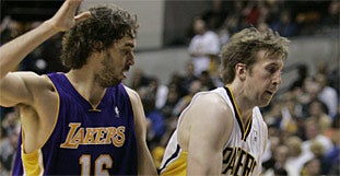 Die Indiana Pacers haben am Dienstag in einem NBA-Basketball-Krimi die Los Angeles Lakers daheim überraschend und hauchdünn 118:117 besiegt. Die Entscheidung fiel mit der Schlusssirene, ein in allerletzter Sekunde von Troy Murphy versenkter Rebound bedeutete die entscheidenden Punkte für die Hausherren. Indiana war Anfang des Schlussviertels bereits 86:101 zurückgelegen, drehte die Partie aber vor allem dank Danny Granger, der insgesamt 32 Punkte beisteuerte und die Pacers im Schlussabschnitt zu einem 32:16 führte.