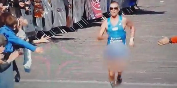 Einem Marathonläufer unterlief ein peinliches Missgeschick.