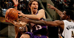 Die Phoenix Suns haben am Dienstag in der nordamerikanischen Basketballliga (NBA) einen 121:117-Sieg bei den Indiana Pacers eingefahren. Das Spiel stand lange auf Messers Schneide. Nicht zuletzt dank Amare Stoudemire, auf dessen Konto 42 Punkte und 13 Rebounds gingen, setzte sich der Tabellenführer der Pacific Division aber noch durch. Wesentlich souveräner agierten die Los Angeles Lakers, die bei den Minnesota Timberwolves einen lockeren 116:95-Sieg einfahren konnten.