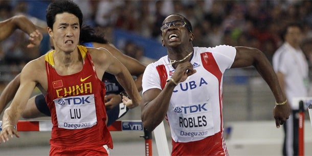 aus Jamaika wegen eines Fehlstarts regelkonform disqualifiziert worden ist, hat mit dem Hürdensprint der Männer am Montag in Daegu auch ein zweiter Leichtathletik-WM-Knüller mit einem Paukenschlag geendet. Der schon als neuer Weltmeister gefeierte Kubaner Dayron Robles wurde wegen Behinderung des Chinesen Liu Xiang nachträglich disqualifiziert.