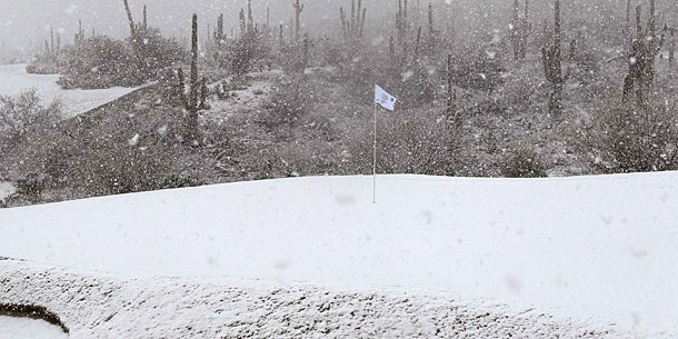 Unglaublich, aber wahr: Wegen Schneesturms in Arizona müssen Tiger Woods & Co warten.