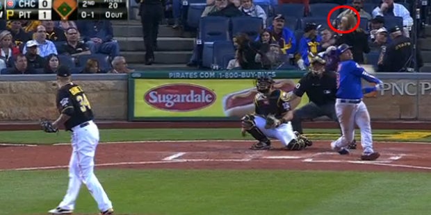 Glück im Unglück hatte eine Frau beim MLB -Spiel zwischen den Pittsburgh Pirates und den Chicago Cubs. Im zweiten Inning wurde ein Pitch von Pittsburghs A.J. Burnett von Chicagos Starlin Castro nur gestreift. Der Ball ging praktisch geradeaus weiter nach hinten und traf dort eine Frau, die in der ersten Reihe ihren Platz suchte, mit voller Wucht am Hinterkopf. Das Sicherheitsnetz war zu lasch gespannt und hatte den Ball nicht abgefangen.