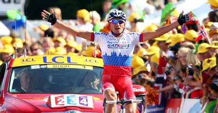 Der Russe Sergej Iwanow hat am Samstag die 14. Etappe der Tour de France für sich entschieden. Der 34-jährige Routinier vom Team Katjuscha setzte sich im Finish aus einer größeren Spitzengruppe ab. Das Hauptfeld kam nach 199 Kilometern mit mehr als 5:30 Minuten Rückstand ins Ziel nach Besancon.