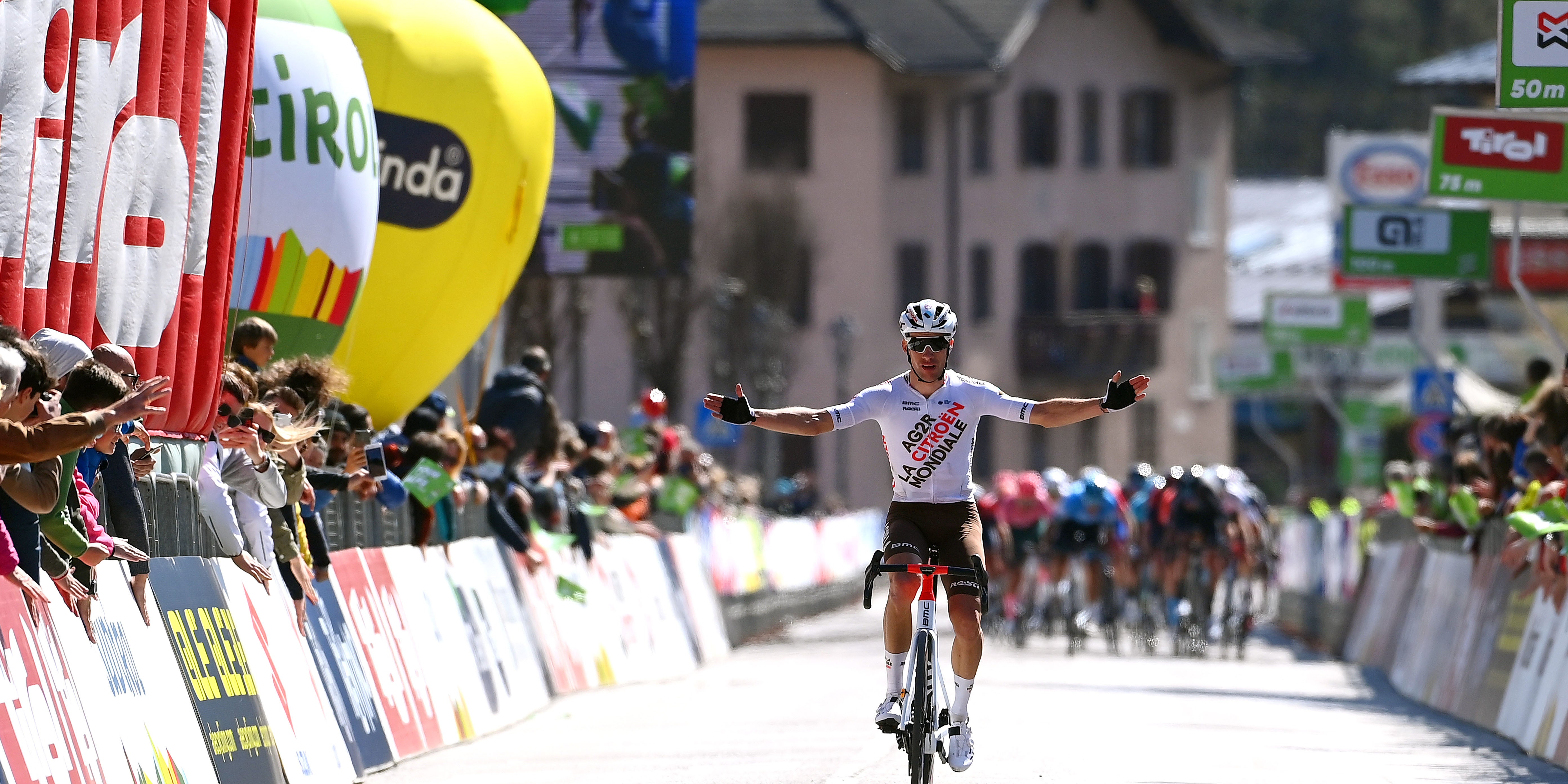 Der Franzose Geoffrey Bouchard hat am Montag die erste Etappe der Tour of the Alps gewonnen. Der 30-Jährige setzte sich nach 161 Kilometern mit 3.000 Höhenmetern von Cles nach San Martino di Castrozza als Solist knapp vor dem Hauptfeld durch. Der lange Zeit einer Ausreißergruppe angehörende Giro-Bergtrikotsieger des Vorjahres rettete fünf Sekunden Vorsprung auf das Feld ins Ziel. Auch sein Osttiroler AG2R-Teamkollege Felix Gall zeigte als Fünfter auf.