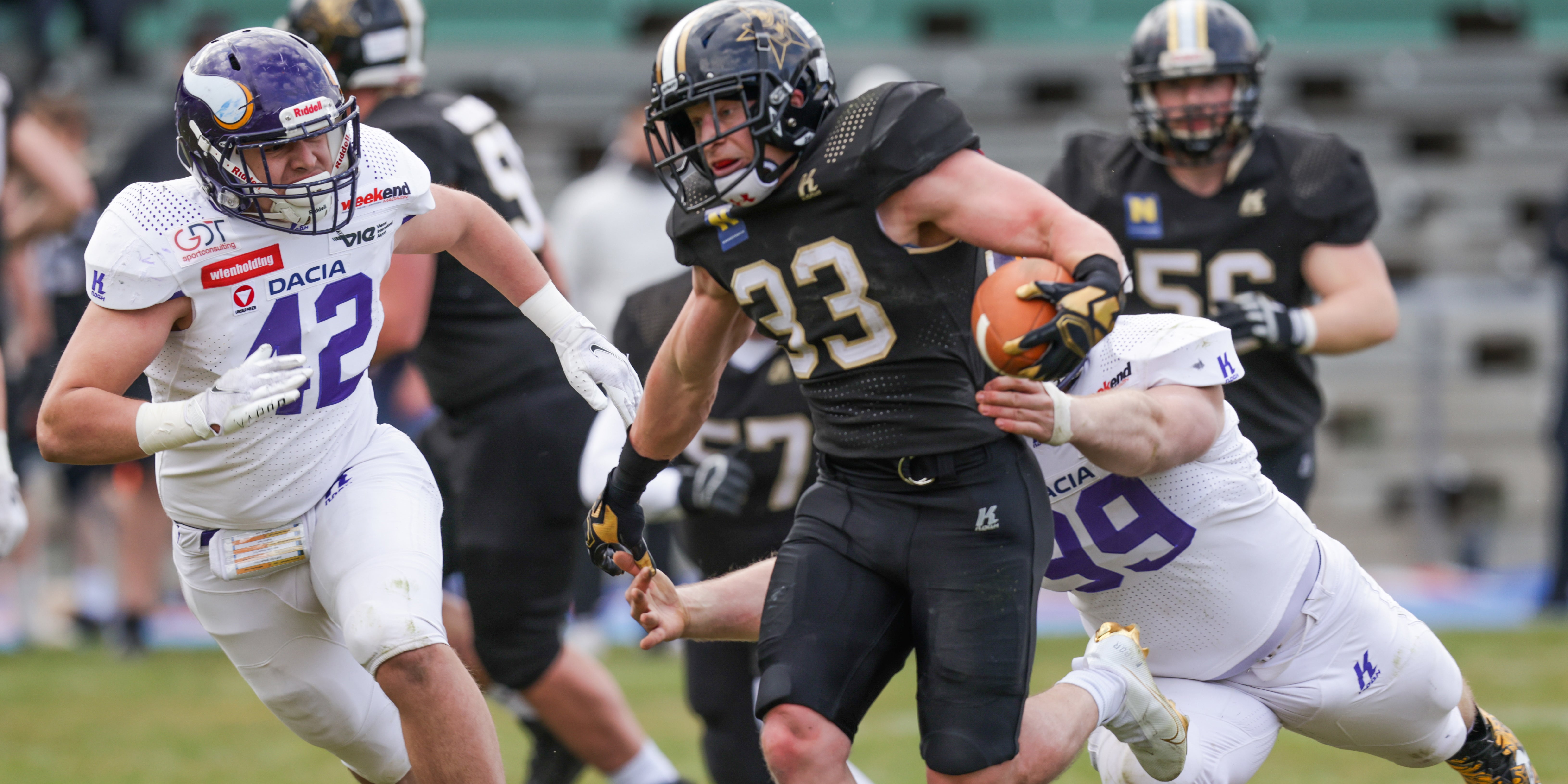 Die Wiener führten gegen die "Vorstädter", die im Vorjahr anders als die Vikings keine Pflichtspiele absolviert haben, bereits vor der ersten Pause mit 21:0. Der neue Vikings-Quarterback Eystin Salum brachte zwölf seiner 16 Versuche an den Mann und erlief mit 26 Rushing Yards selbst drei Touchdowns.