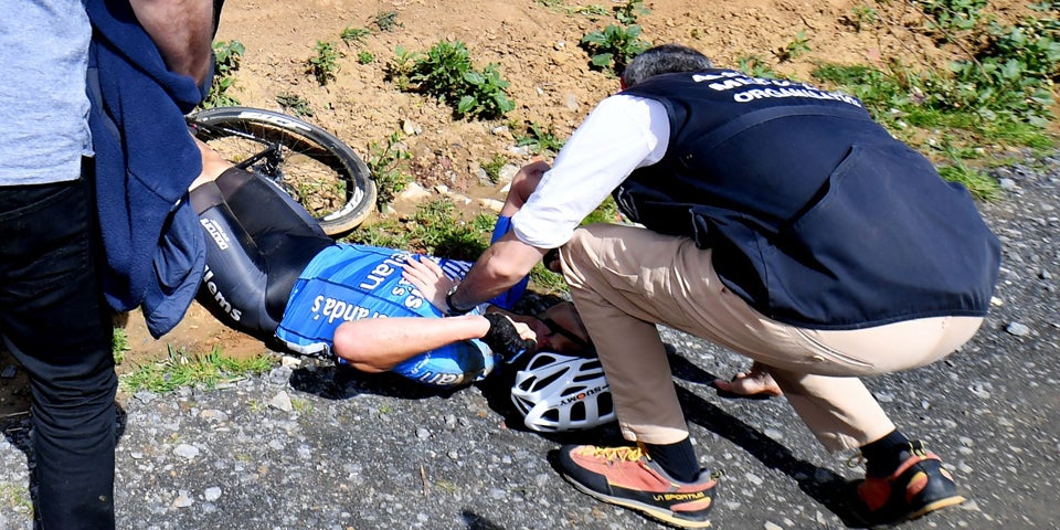 Der Radprofi stürzte auf einer Kopfsteinpflaster-Passage schwer. Wie genau es zum Unfall kam, ist noch unklar.