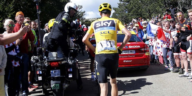 Chris Froome hat bei der 103. Tour de France in einem dramatisch-chaotischen Etappenfinale am Mont Ventoux sein Gelbes Trikot nur aufgrund einer Jury-Entscheidung behalten. Kurz vor dem Ziel kam der britische Vorjahressieger auf der Verfolgung einer Spitzengruppe zu Sturz, weil ein Begleitmotorrad abrupt an der Weiterfahrt gehindert worden war, vermutlich aufgrund der Zuschauermassen.