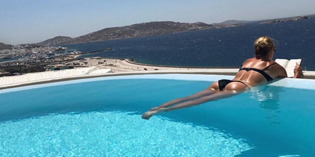 In einem Hauch von nichts entspannt sie im und am Wasser, sorgt für einen wahrlich traumhaften Ausblick. Mal chillt sie im Pool, mal posiert sie mit einer Freundin. Immer stellt sie dabei ihre knackige Rückansicht zur Schau.
