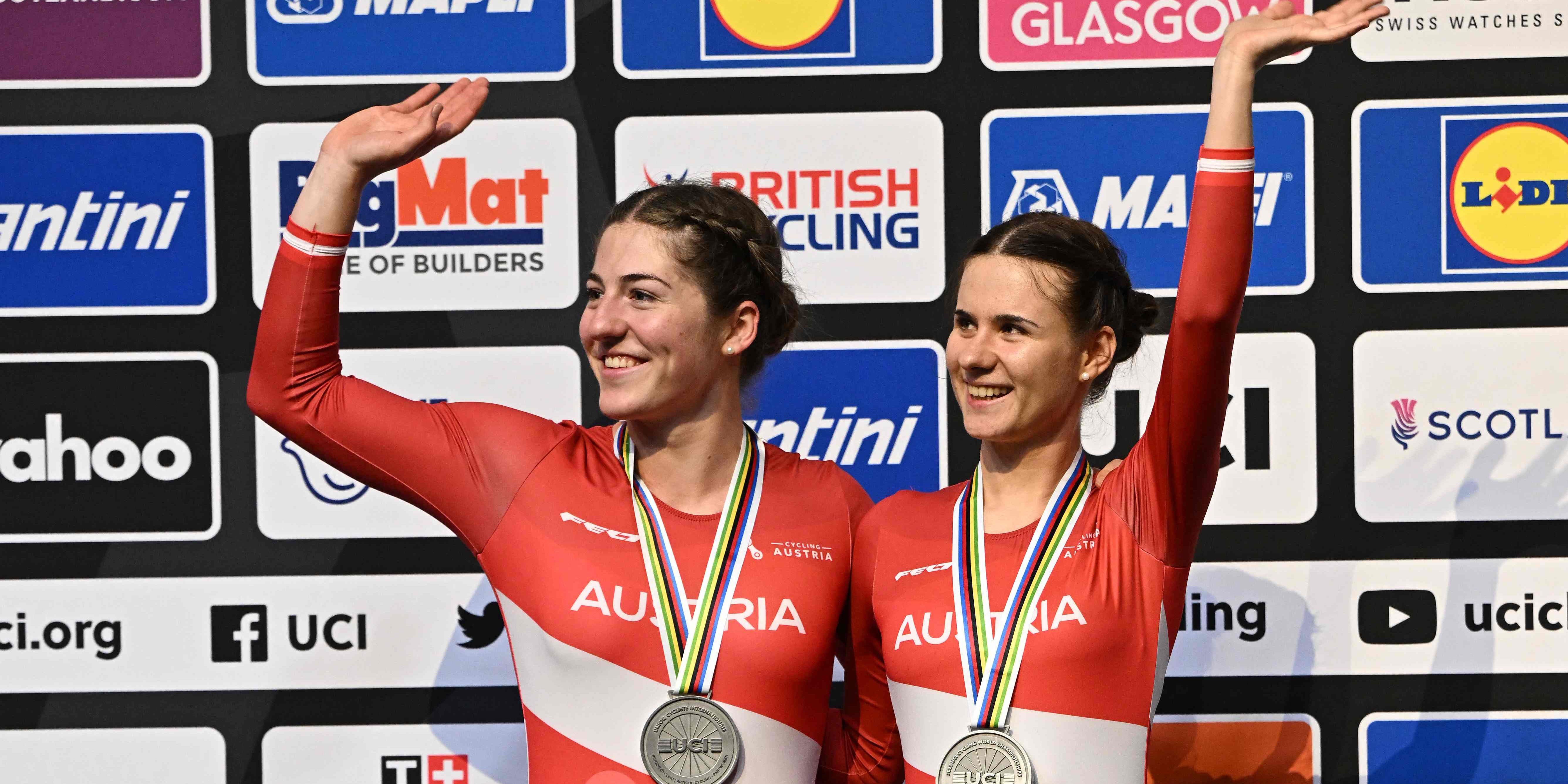 Österreichs Kunstradduo Rosa Kopf und Svenja Bachmann hat sich bei den Radweltmeisterschaften in Glasgow Silber geholt.