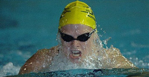 Bestmarke über 100m Brust von der australischen Schwimmerin Leisel Jones gleich zwei Mal verbessert. Lenton schwamm 100m-Delfin-Rekord.
