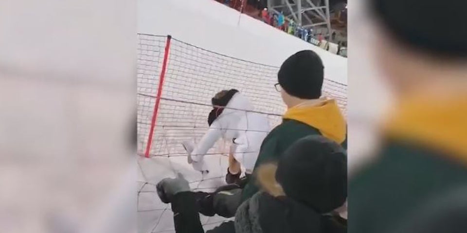 Ein Fan-Video aus Schladming zeigt, wie die Flitzerin unter dem Netz durchklettert.