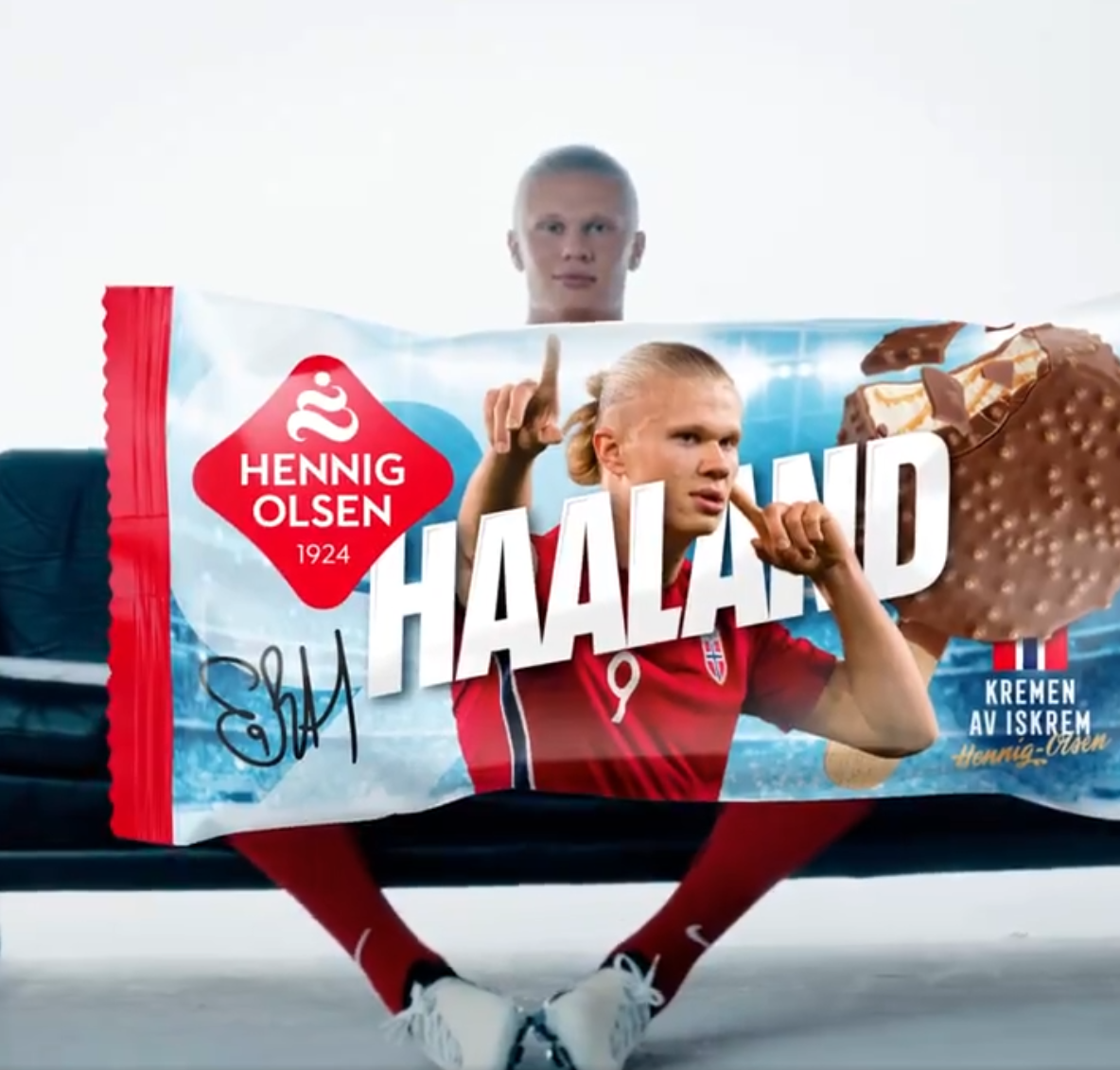Der Wikinger erweitert sein beeindruckendes Karriere-Portfolio um eine eiskalte Verlockung. Ein aufregender Trailer hat die Fans des 23-jährigen am Donnerstag regelrecht in Begeisterung versetzt. In diesem ist der norwegische Fußballstar im Nationalteam-Trikot zu sehen, wie er genüsslich auf einer Couch in ein ganz besonderes Eis beißt. Dabei handelt es sich aber keineswegs um gewöhnliches Eis, sondern um eine ganz besondere Kreation des Fußballidols.