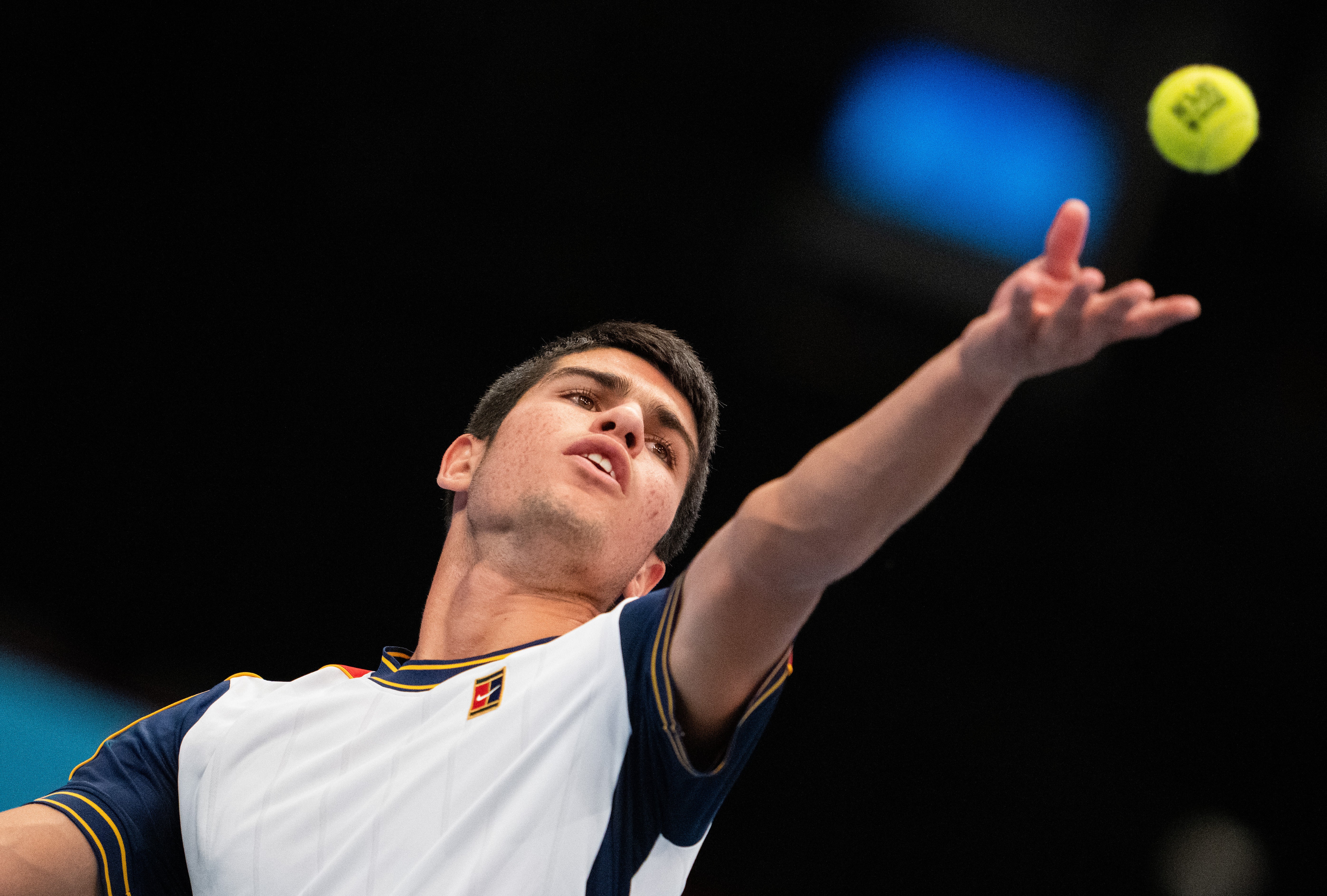 Tennis-Aufsteiger Carlos Alcaraz muss wegen einer leichten Ellbogenblessur pausieren.