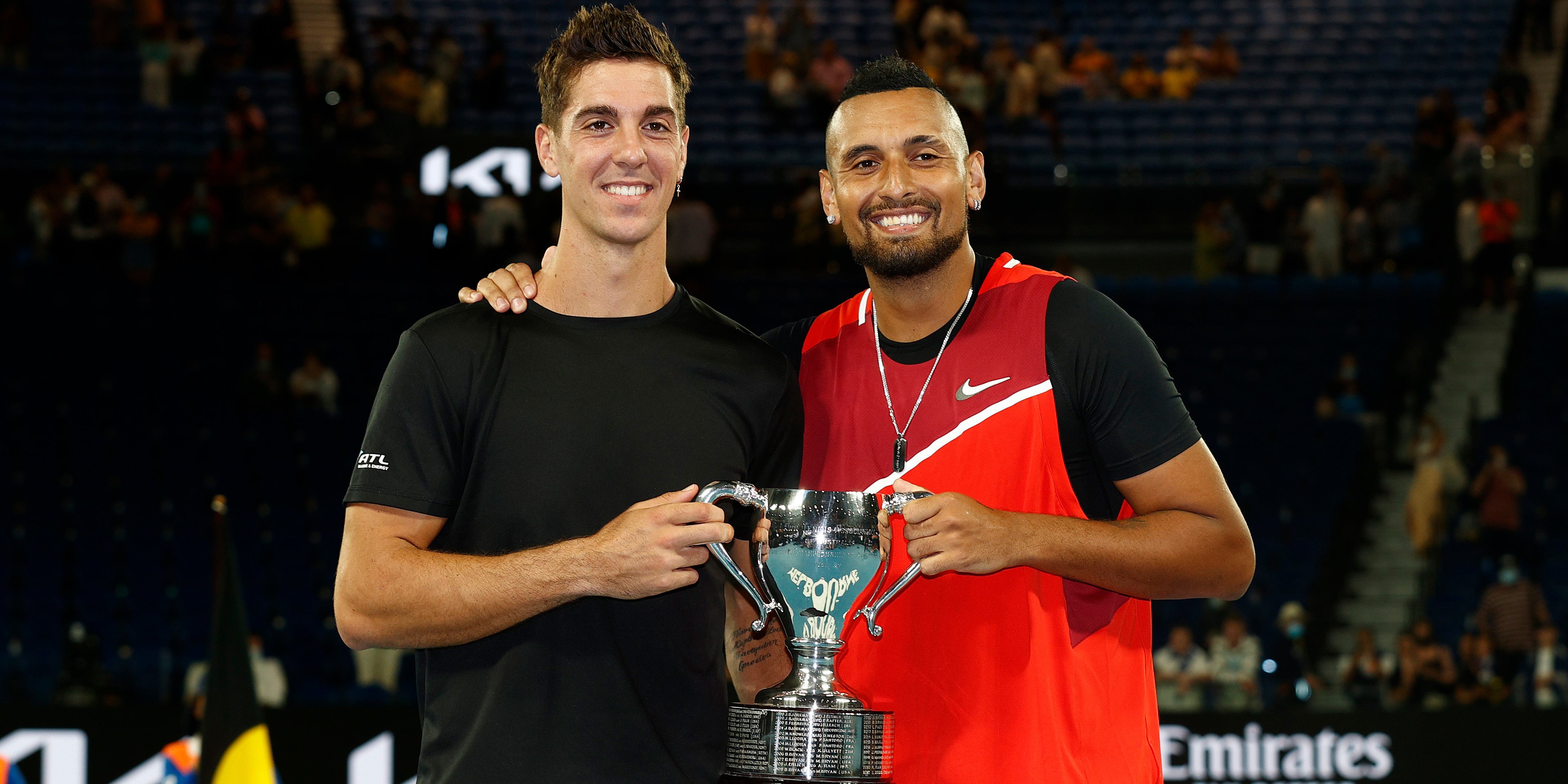 Die australischen Tennisspieler Nick Kyrgios und Thanasi Kokkinakis haben ihre überraschende Erfolgsserie im Doppel-Bewerb der Australian Open mit dem Titelgewinn gekrönt.