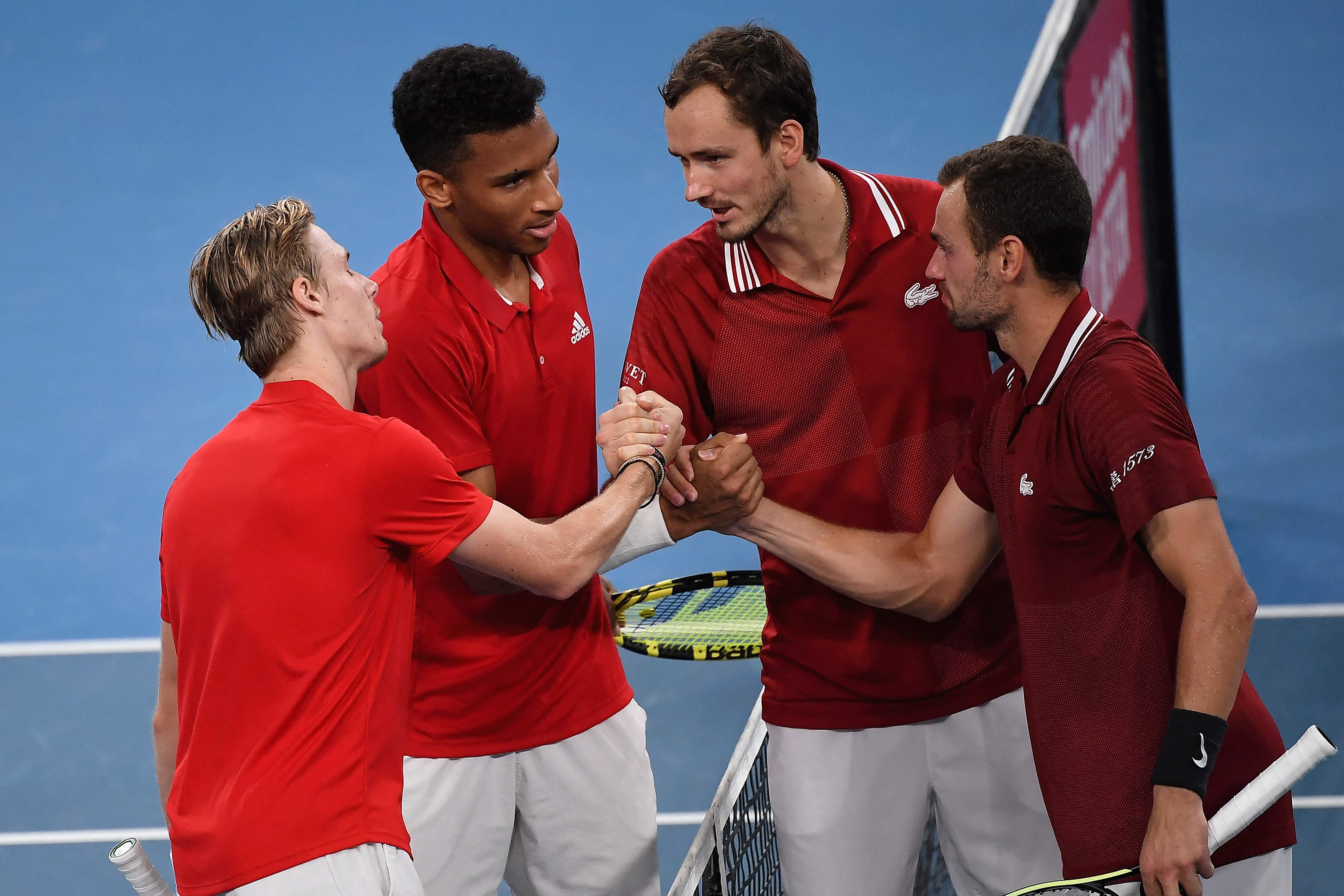 Auch Russlands Topspieler Daniil Medwedew konnte das Aus seines Teams bei dem mit zehn Millionen US-Dollar dotierten Bewerb nicht verhindern. Die Nummer zwei der Welt gewann zwar das Spitzeneinzel gegen Felix Auger-Aliassime nach einer starken Leistung mit 6:4,6:0, danach musste sich Roman Safiullin dem Kanadier Denis Shapovalov aber mit 4:6,7:5,4:6 geschlagen geben. Im entscheidenden Doppel setzten sich Auger-Aliassime und Shapovalov gegen Medwedew und Safiullin mit 4:6,7:5,10:7 durch.