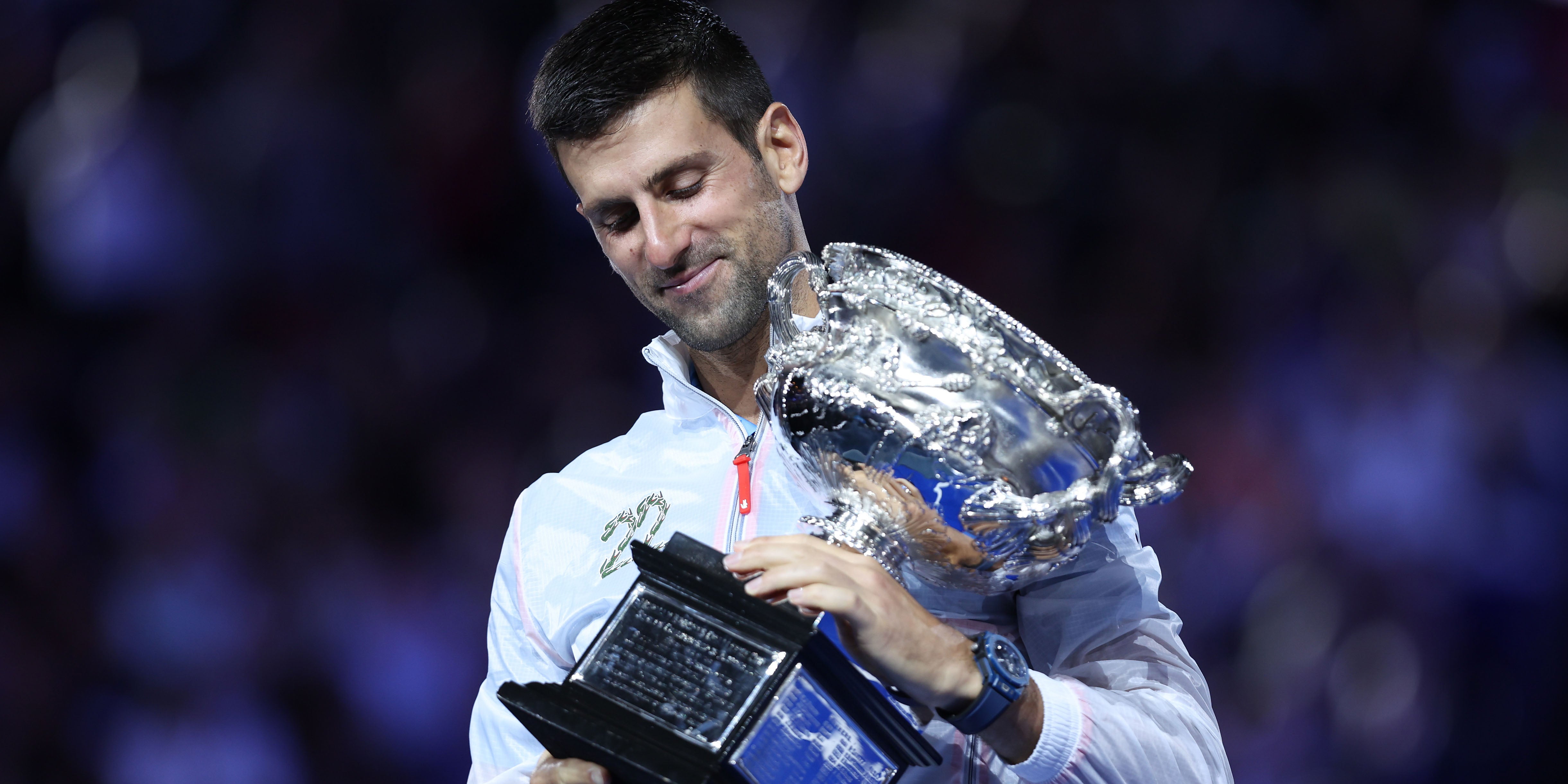Djokovic bedankte sich dafür explizit bei dem Griechen. "Ich bin von den Worten von Stefanos sehr gerührt, danke, dass du so freundlich bist." Danach brach Djokovic, der die nicht als Tennis-Nationen bekannten Länder Serbien und Griechenland ansprach, eine Lanze für alle jungen Träumer. "Wagt es zu träumen, träumt groß, egal, wo ihr herkommt." Vorbereitet war man im Team Djokovic auf den Titel, bei der Siegerehrung stand er schon in der Ausrüster-Weste mit der Nummer 22 aufgedruckt. Seine Box hatte T-Shirts mit der Nummer 10 für den ebensovielten Melbourne-Titel an.