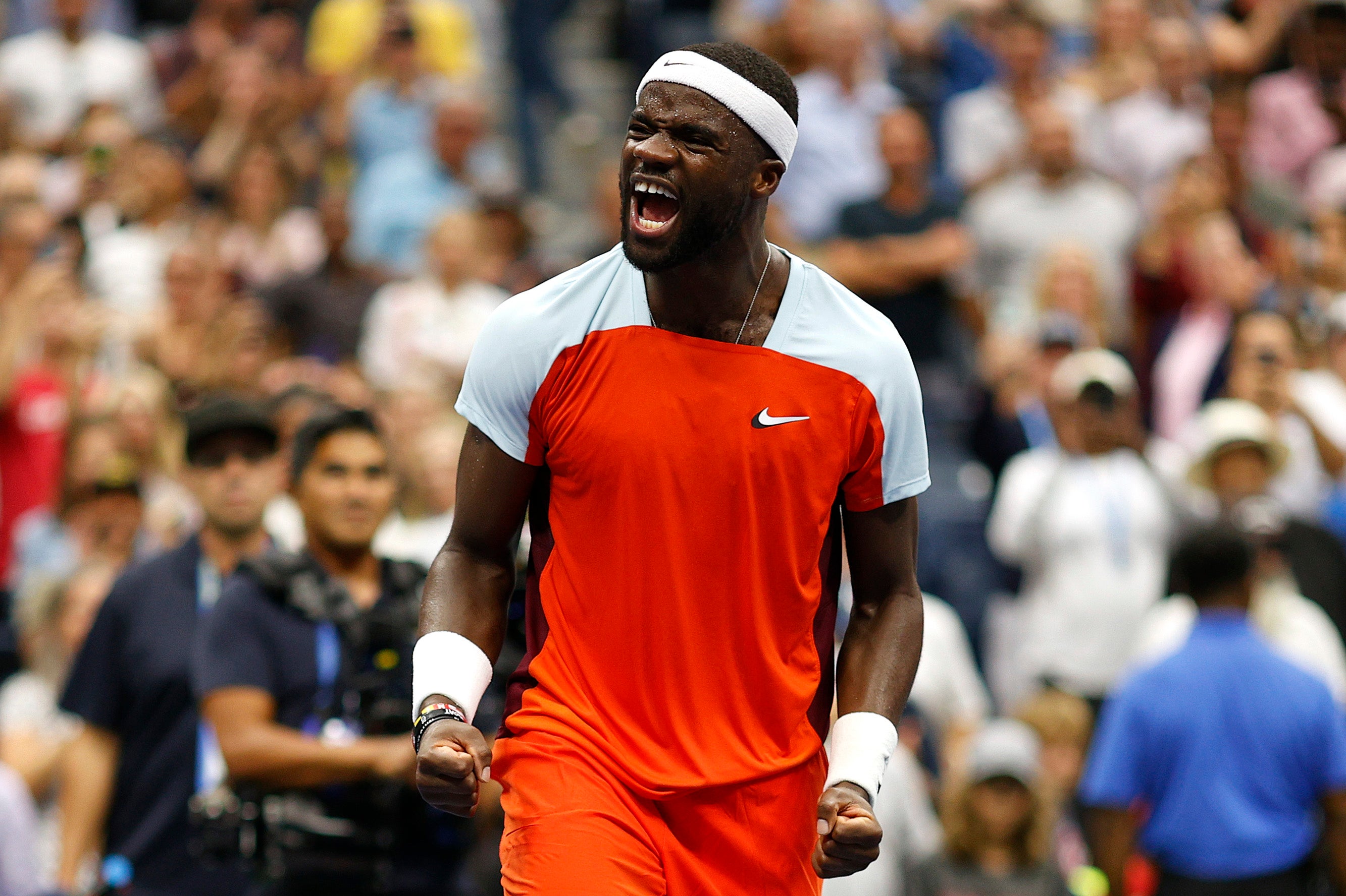 Mit großer Nervenstärke hat Frances Tiafoe seinen Siegeszug bei den US Open im Tennis in New York fortgesetzt und das Halbfinale erreicht. Der 24-Jährige zeigte beim 7:6(3),7:6(0),6:4-Erfolg im Viertelfinale am Mittwoch gegen den Russen Andrei Rubljow vor allem in den Tie-Breaks seine enormen Qualitäten und zog beim Heimturnier als erster US-Amerikaner seit Andy Roddick 2006 in die Runde der besten vier ein.