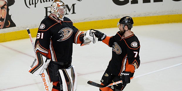 Überragender Akteur der Ducks, die ihren ersten Stanley-Cup-Finaleinzug seit dem Triumph 2007 anstreben, war der dänische Torhüter Frederik Andersen mit 32 abgewehrten Schüssen. Hampus Lindholm (9.), Kyle Palmieri (25.), Nate Thompson (53.) und Jakob Silfverberg (59./empty net) trafen für die Ducks, Brad Richards (40.) gelang nur der zwischenzeitliche Anschlusstreffer für Chicago. Die zweite Partie der Finalserie im Westen findet am Dienstag erneut in Anaheim statt.