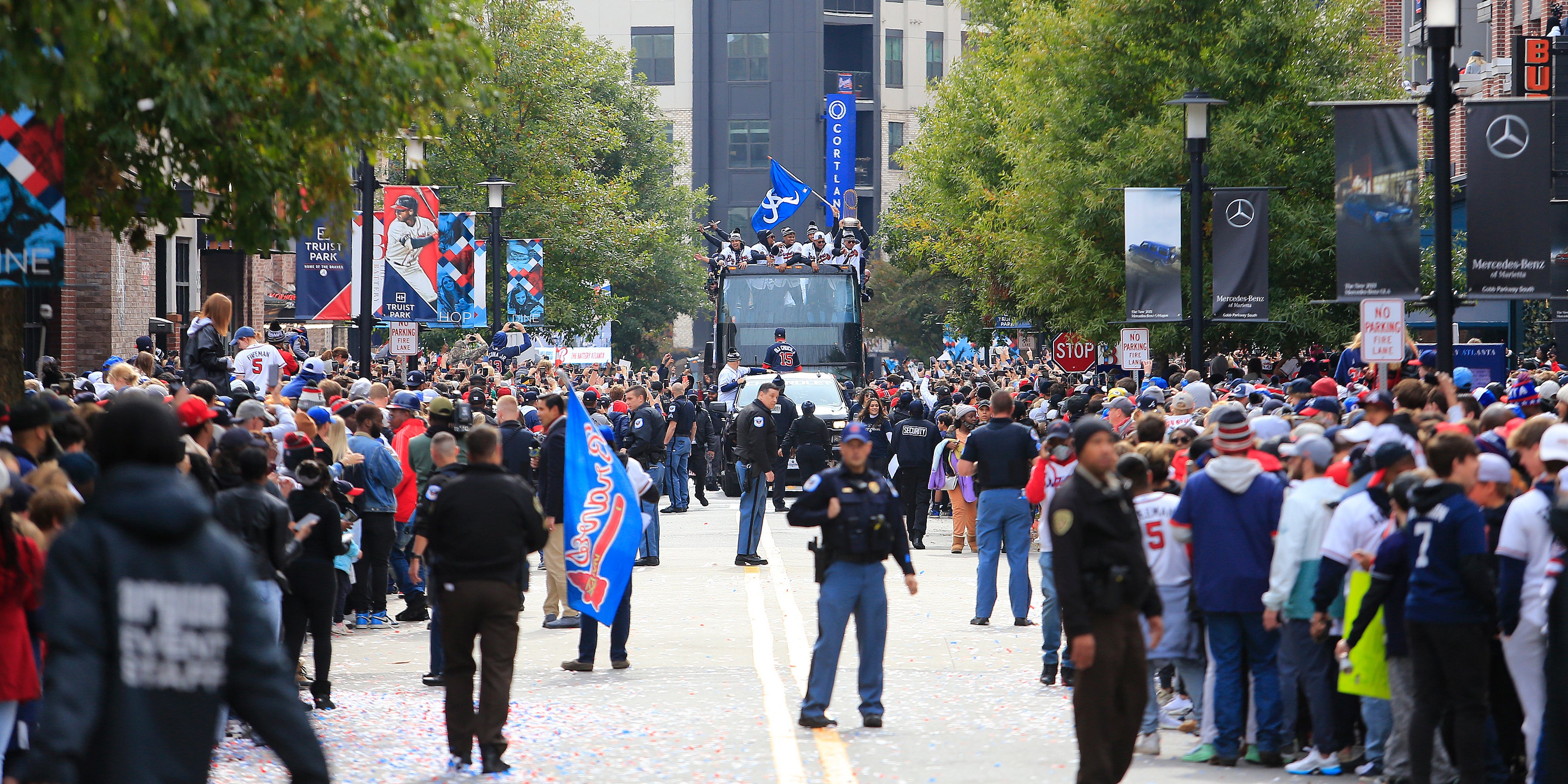300.000 bis 400.000 Fans jubelten laut Polizei bei der Parade den Braves drei Tage nach dem ersten Titelgewinn seit 26 Jahren zu. Clubpräsident Alex Anthopoulos verfolgte wegen einer Covid-19-Infektion die Parade aus einer privaten Suite im Stadion Truist Park. "Diese Parade war das Unglaublichste, das wir je erlebt haben", sagte er. "Wir werden für den Rest unseres Lebens Weltmeister sein, jeder einzelne von uns in diesem Stadion."