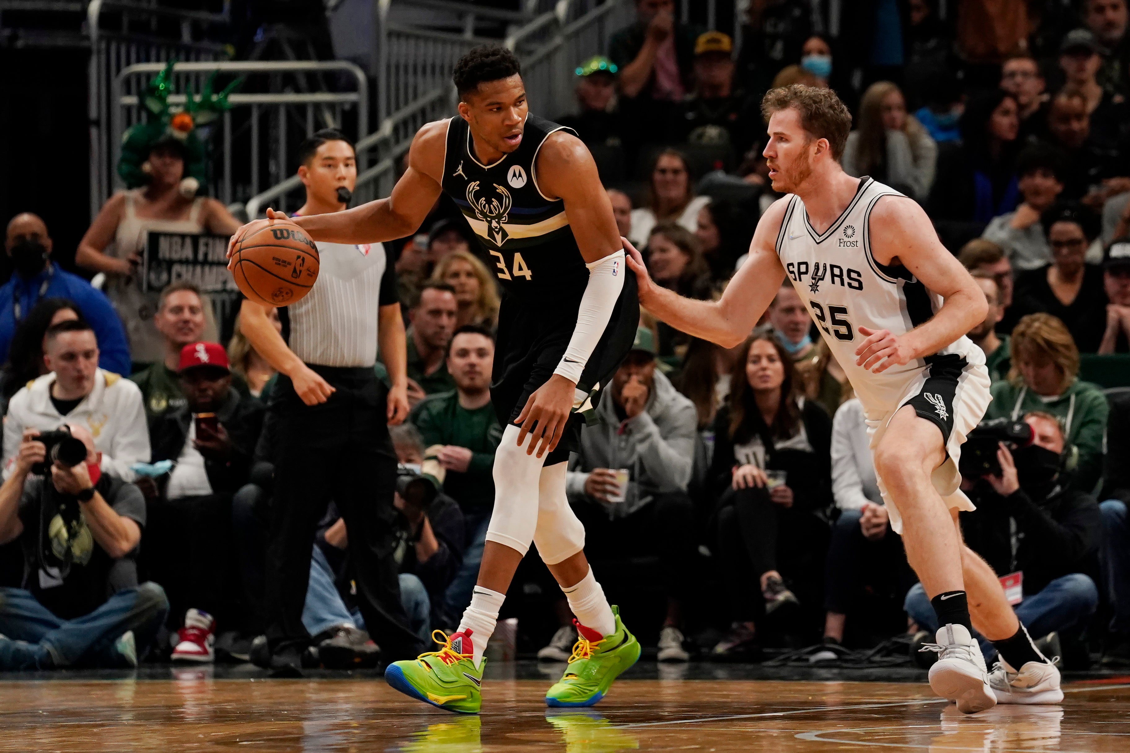 Milwaukee (Wisconsin). Die San Antonio Spurs haben am Samstag (Ortszeit) in der National Basketball Association (NBA) ihren zweiten Saisonsieg gefeiert. Nach zuvor vier Niederlagen bezwangen sie dabei auswärts den amtierenden NBA-Champion Milwaukee Bucks. Jakob Pöltl steuerte zum 102:93 acht Punkte, sechs Rebounds und je einen Assist sowie Steal in 22:42 Minuten Einsatzzeit bei.