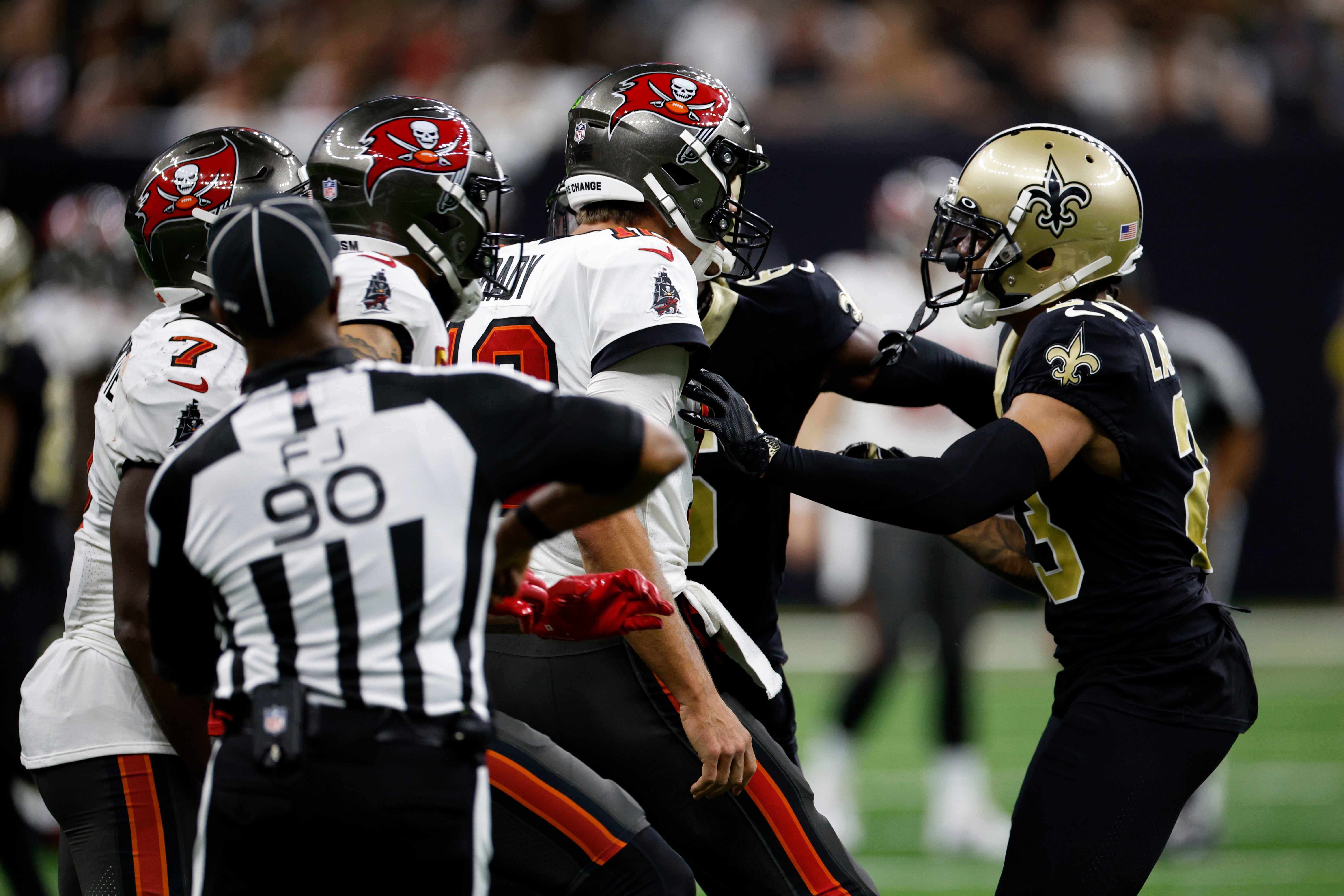 Die Eskalation nahm beim Stand von 3:3 seinen Lauf. Brady scheiterte im letzten Passversuch. Saints-Cornerback Marshon Lattimore startet daraufhin ein Wortgefecht mit dem siebenfachen Superbowl-Champion. Bradys Teamkollege Mike Evans reicht es auch und wirft Lattimore mit einem heftigen Tackle abseits des Spiels zu Boden. Die Auseinandersetzung konnte erst durch die Schiedsrichter nach mehreren Versuchen aufgelöst werden. Evans und Lattimore flogen daraufhin für den Rest der Partie vom Platz.