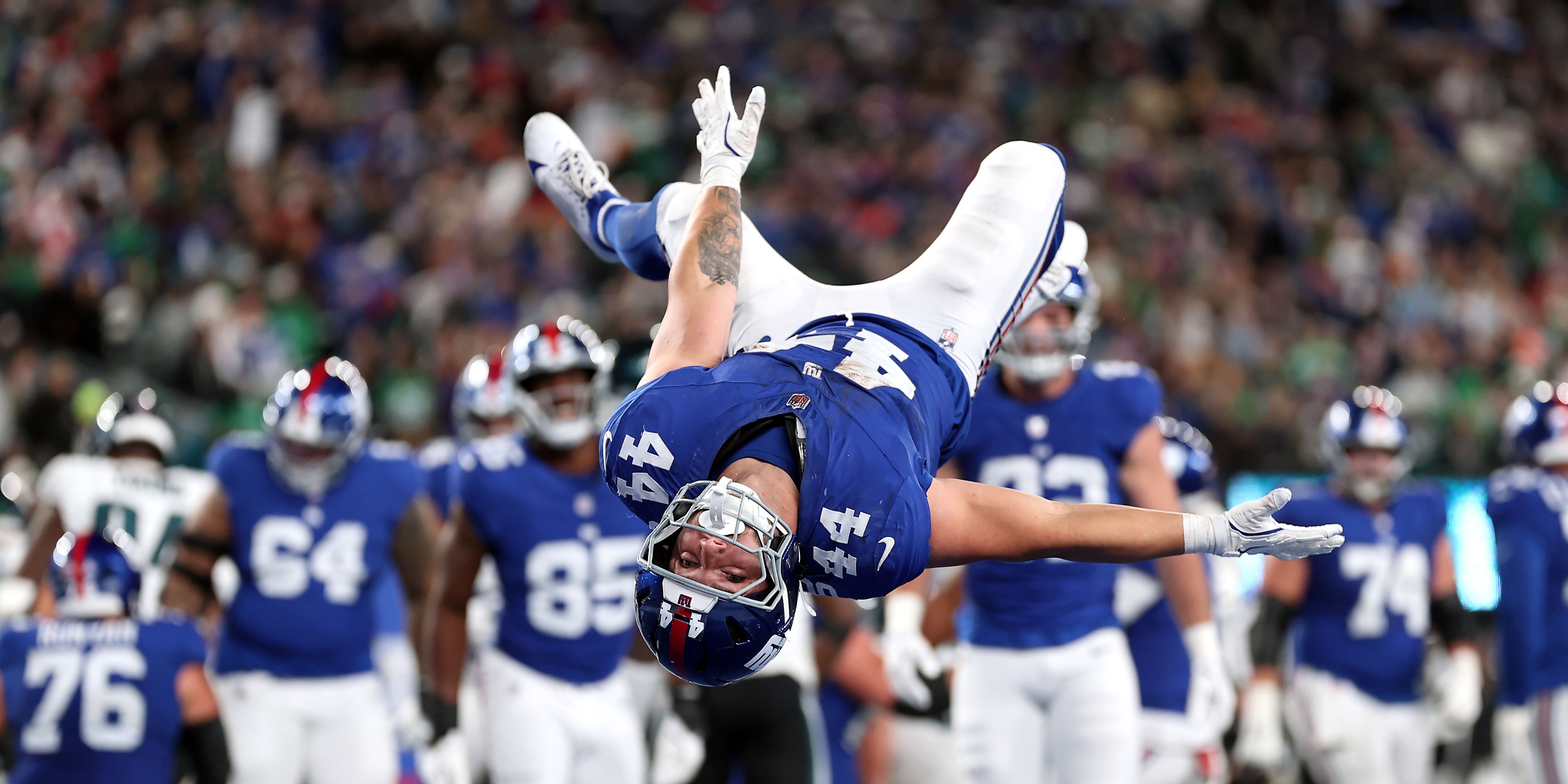 Im Anschluss wurde der Sensations-Coup ausgiebig gefeiert. Im anschließenden Interview waren Skattebo und Dart vor den jubelnden Giants-Fans bei den Amazon-Experten rund um Ryan Fitzpatrick zu Gast. Dort nahmen die Emotionen überhand.