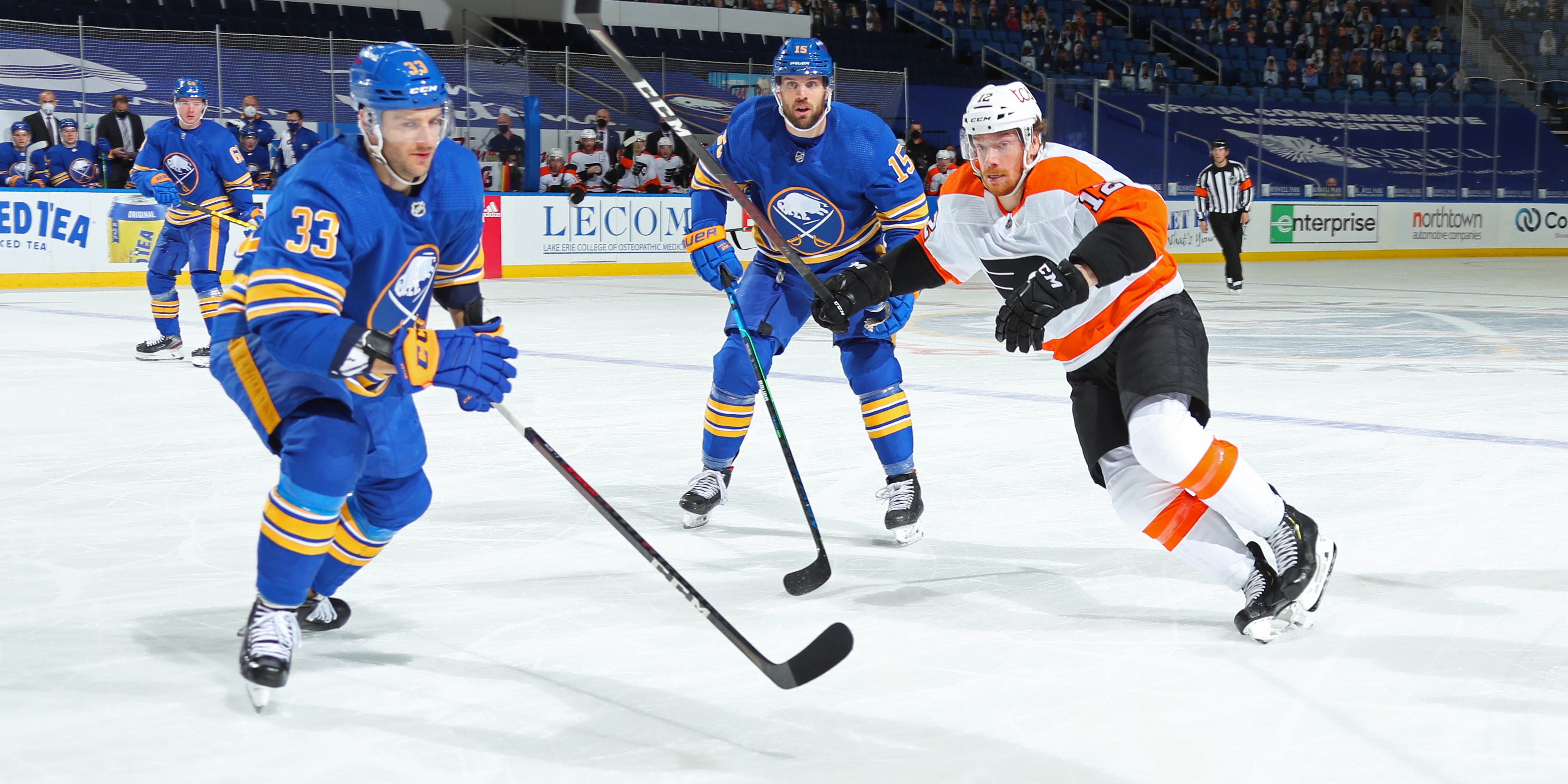 Das Team aus Pennsylvania setzte sich in Buffalo trotz 0:3-Rückstandes noch mit 4:3 nach Verlängerung durch. Die Sabres bauten die längste sieglose Serie der NHL seit Einführung des Penaltyschießens im Jahr 2005 aus.