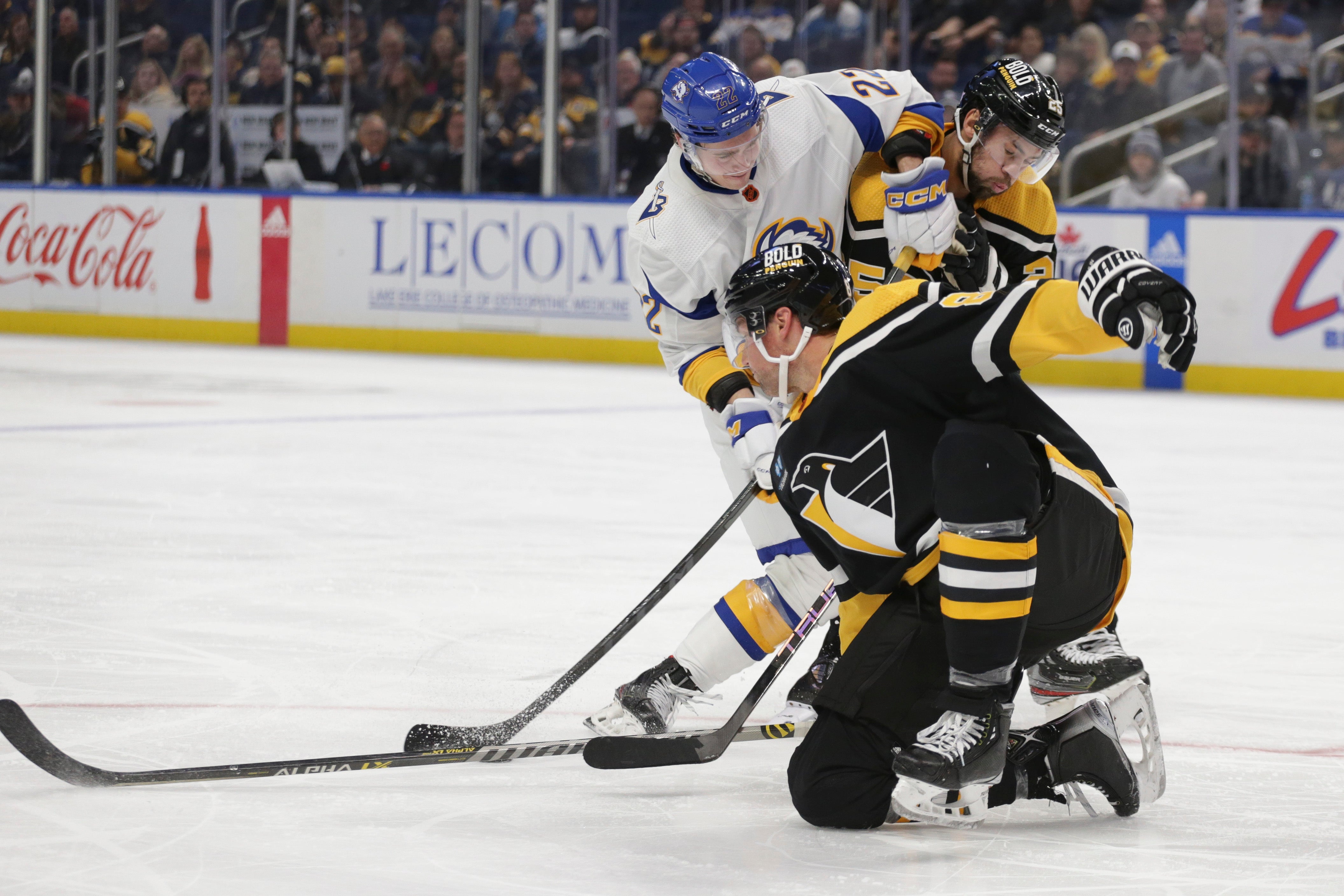 Die Mannschaft um die Stürmerstars Sidney Crosby und Jewgenij Malkin führte bei den Buffalo Sabres zu Beginn des Schlussdrittels noch mit 3:1, dank fünf Treffern ab der 44. Minute siegten die Heimischen aber mit 6:3.