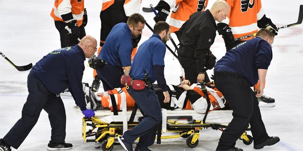 Für die Schrecksekunde des Spiels sorgt Flyers-Spieler Scott Laughton, der nach einem Rempler von Washingtons John Carlson hinter dem Tor in die Bande kracht. Er bleibt regungslos liegen, wird betreut. Auf der Bahre wird Laughton vom Eis gefahren. Er kann seine Beine offenbar bewegen und ist bei Bewusstsein. Zur weiteren Abklärung wird er aber ins Spital transportiert.