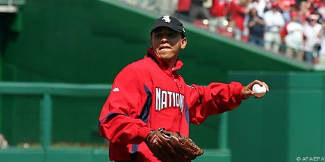 Obama stellte sich vor der Partie gegen Vizemeister Philadelphia Phillies mit roter Nationals-Jacke und schwarzer Kappe seines Lieblingsteams Chicago White Sox auf den Wurfhügel und warf den Baseball zur knapp 19 Meter entfernten "Home Plate". Dort hatte Washingtons MLB-Profi Ryan Zimmermann einige Mühe, das Spielgerät zu fangen.