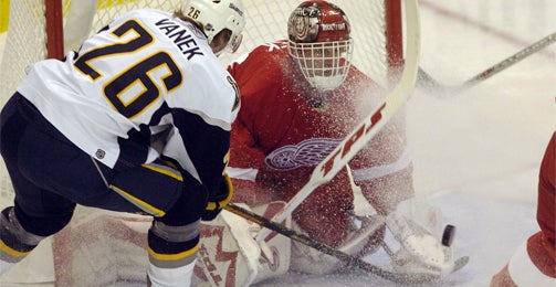 In seinem ersten NHL-Jahr hatte Vanek 15 Spiele lang auf seinen ersten Treffer warten müssen, in seiner "sophomore-season" trug sich der 22-Jährige bereits im vierten Spiel in die Torschützenliste ein. Jason Williams hatte die Red Wings vor über 20.000 Zuschauern in der Joe Louis-Arena mit 2:0 in Führung gebracht (2., 14.), Chris Drury gelang im Powerplay (16.) noch im ersten Drittel der Anschlusstreffer für die Sabres, ehe Vanek ebenfalls im Powerplay zuschlug. Der Steirer bezwang in der 38. Minute den ehemaligen Buffalo-Torhüter Dominik Hasek zum 2:2.