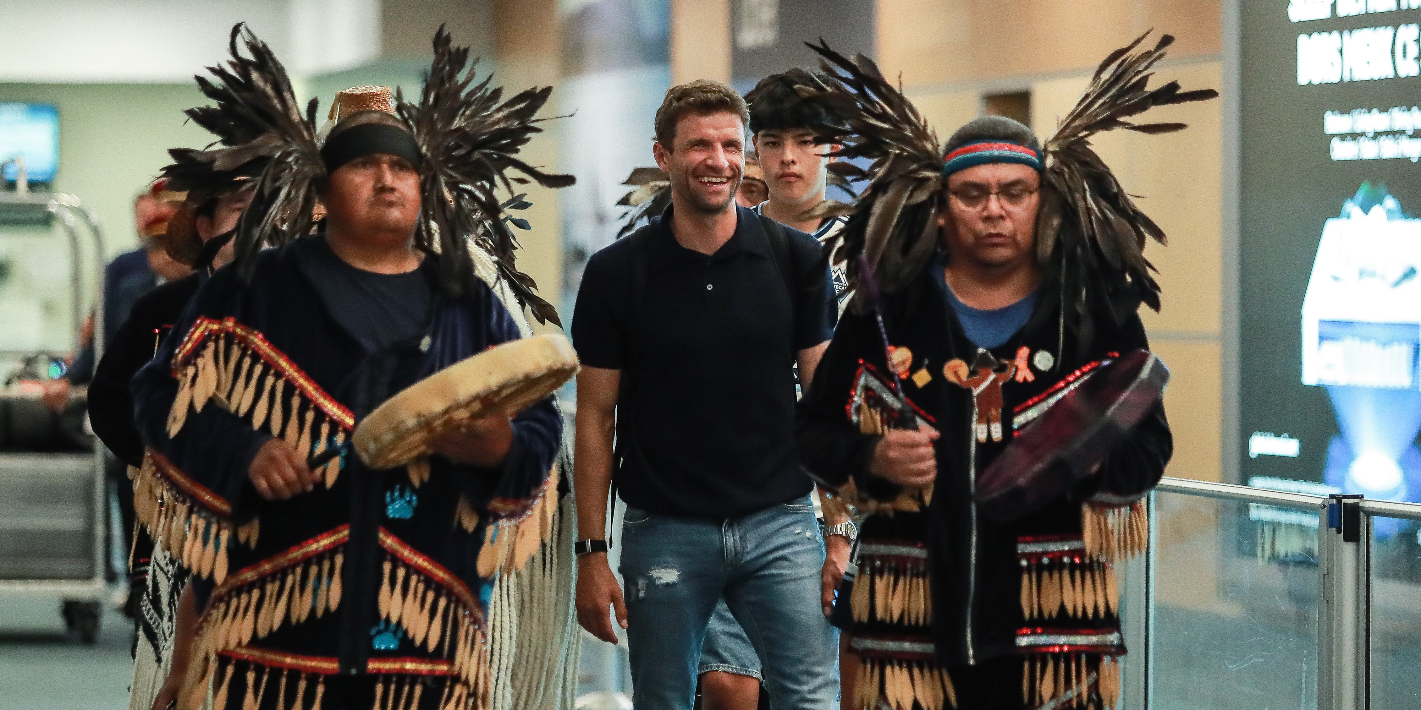 Am Mittwoch landete der neue Profi der Whitecaps um 17 Uhr und wurde zunächst von einer Delegation der "Musqueam", den Ureinwohnern Vancouvers, begrüßt. Mit Trommeln und Gesängen geleiteten sie ihn zu rund 800 Fans am Flughafen. Als Zeichen des Respekts erhielt Müller einen traditionellen Umhang. "Wenn spezielle Menschen, wie du einer bist, zu uns kommen, wollen wir unseren Respekt zeigen. Wir heißen Dich bei uns willkommen! Das ist dein neues Zuhause und es ist okay, wenn du bei uns bleibst", so die Begrüßungsworte der "Musqueam" an Müller.