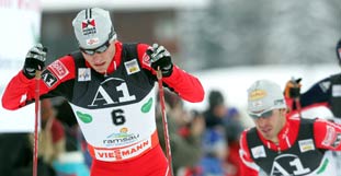 Der Österreicher Bernhard Gruber hat am Samstag in Ramsau am Dachstein nur knapp seinen ersten Weltcupsieg in der Nordischen Kombination verpasst. Der 25-jährige Salzburger belegte im Massenstart-Bewerb 3,5 Punkte hinter dem Deutschen Björn Kircheisen, der damit auch die Gesamtführung übernahm, Platz zwei. Ein nicht gewerteter Telemark hatte Gruber im Finale vier Punkte gekostet.