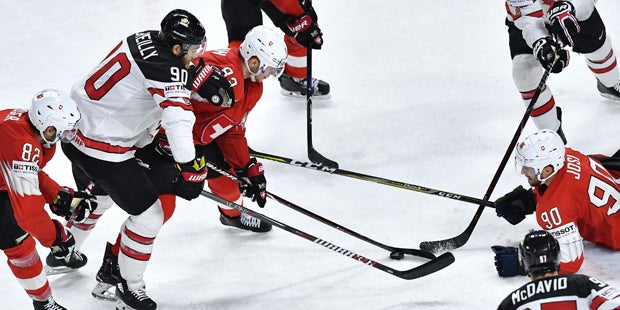 Tristan Scherwey (19.) brachte die Schweiz in der Royal Arena kurz vor der ersten Pause mit einem punktgenauen Schuss ins lange Eck in Front. Fast auf idente Weise kam Kanada im Mittelabschnitt durch Bo Horvat (28.) zum Ausgleich, in Überzahl legte dann aber wieder die Schweiz vor. Nach Vorlage von Kevin Fiala stand Gregory Hoffmann, ein Teamkollege von ÖEHV-Verteidiger Stefan Ulmer beim HC Lugano, einschussbereit vor dem Tor.