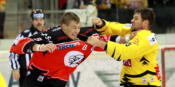 Villach, 3.700, SR Kaspar/Trilar. Tore: Hughes (7., 60./EN), Petrik (7.), Altmann (20./PP, 27.), Platzer (23.), Göhringer (60.) bzw. Baumgartner (17.), Dorion (36./SH), Lebler (37.). Strafminuten: 2 bzw. 4.