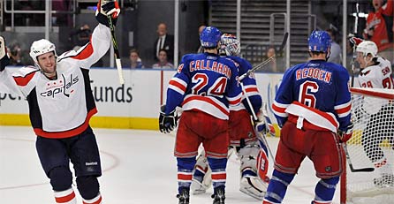 Ein ganz wichtiger Auswärtssieg gelang den Washington Capitals im Madison Square Garden. Die Mannschaft aus der Hauptstadt setzte sich bei den New York Rangers nach zwei vorherigen Heimniederlagen mit 4:0 durch und verkürzte in der Serie auf 1:2. Der Russe Alexander Semin erzielte dabei die ersten beiden Tore und bereitete den dritten Treffer vor. Semins 20-jährigem Landsmann und Rookie Simeon Warlamow gelang im Tor der Capitals das erste Shut-out in der Meisterschafts-Endrunde. Der Schlussmann parierte alle 33 Schüsse des Gegners.