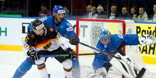 Kasachstan ging durch Gawrilin (11.) überraschend in Führung, Plachta (19.) traf kurz vor der ersten Drittelpause zum Ausgleich. Die von Pat Cortina trainierte Deutschen kamen in der Folge immer besser ins Spiel und belagerten phasenweise das Tor von Goalie Jeremejew, der jedoch nicht mehr bezwungen wurde.