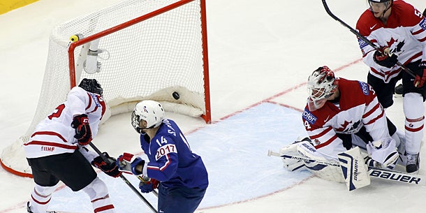 Pierre-Edouard Bellemare machte mit seinem verwandelten Penalty den erst zweiten französischen Sieg über Kanada bei einer WM nach dem 4:1-Triumph 1995 in Schweden wahr. Stephane Da Costa hatte die Franzosen in einer ausgeglichenen Partie in der Tschichowka-Arena zunächst in Führung gebracht (18./PP), Brayden Schenn (20/PP.) traf kurz vor der Pause zum Ausgleich. Nach einem torlosen Mitteldrittel schoss Erik Gudbranson (51.) das junge kanadische Team in Front, Da Costa (53./PP) erzielte das 2:2. Die Verlängerung blieb ohne Tore.