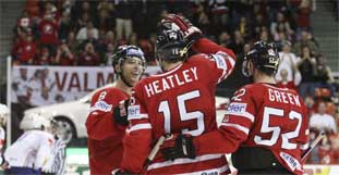 Dan Heatley ist nach seinen drei Treffern jetzt Kanadas WM-Rekordtorschütze. Dennoch wollte kein richtiger Jubel aufkommen.