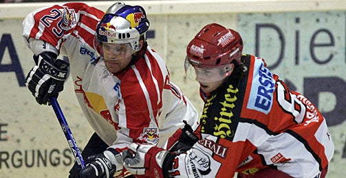 Tore: Perthaler (10.), Gaucher (20./PP), M. Hohenberger (24.), Shearer (53.) bzw. Herzog (42.), Göttfried (45.). Strafminuten: 38 bzw. 16