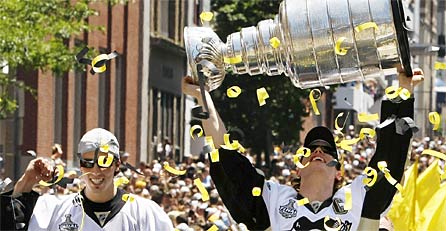 Die Pittsburgh Penguins haben mit rund 350.000 Fans ihren dritten Meistertitel der nordamerikanischen Eishockey-Liga NHL gefeiert. Spieler, Funktionäre und ihre Familienmitglieder fuhren auf mehreren offenen Lastwagen und in Cabriolets durch das Stadtzentrum. Kapitän Sidney Crosby, der mit 21 Jahren als jüngster Meister-Kapitän in die NHL-Geschichte einging, präsentierte der jubelnden Menge den Stanley Cup.