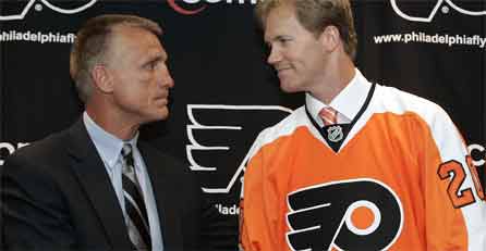Die Philadelphia Flyers haben sich am Dienstag in der National Hockey League (NHL) mit dem kanadischen Verteidiger Chris Pronger über einen mehrjährigen Vertrag geeinigt. Der NHL-Club sicherte sich in einem Tauschgeschäft mit den Anaheim Ducks die Dienste des 34-Jährigen, der in der abgelaufenen Saison 11 Tore und 37 Assists für die Ducks erzielte. Pronger unterschrieb beim Club des österreichischen Stürmer Andreas Nödl einen Siebenjahresvertrag und erhält 34,9 Millionen Dollar (24,9 Mio. Euro) .