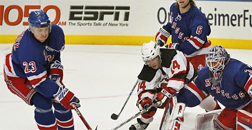 Die Rückkehr von Abwehr-Bollwerk Darius Kasparaitis ins Team schien die Rangers zu beflügeln - letztlich wurde die Partie gegen den Erzrivalen aus New Jersey zu einem verkehrten Spiegelbild der letzten Playoff-Serie, als die Rangers gegen die Devils ohne einen einzigen Sieg ausschieden.