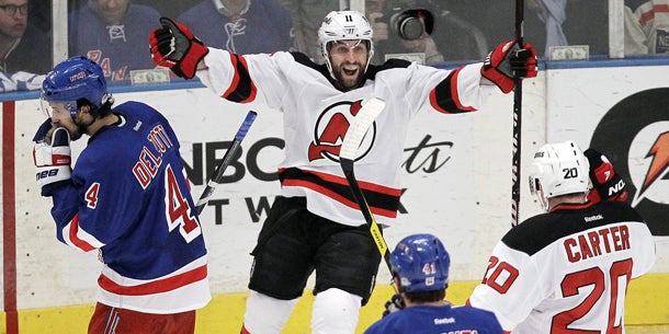 New Jersey erwischte einen Traumstart und lag nach zehn Minuten bereits mit 3:0 vorn. Die Rangers konnten bis zur 41. Minute jedoch zum 3:3 ausgleichen. Ryan Carter brachte die Devils vier Minuten vor dem Ende erneut in Führung, Zach Parise gelang mit einem Schuss ins leere Tor der Endstand (60.).